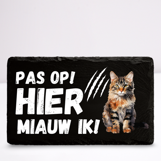 Pas op hier miauw ik! Kat | Leistenen wandbordje