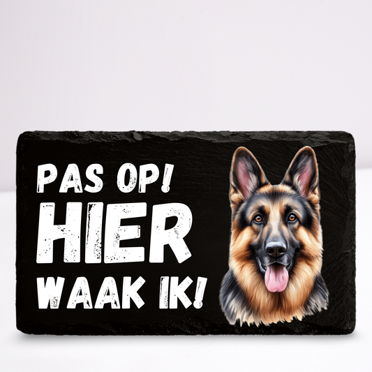 Pas op hier waak ik! Duitse herder | Leistenen wandbordje