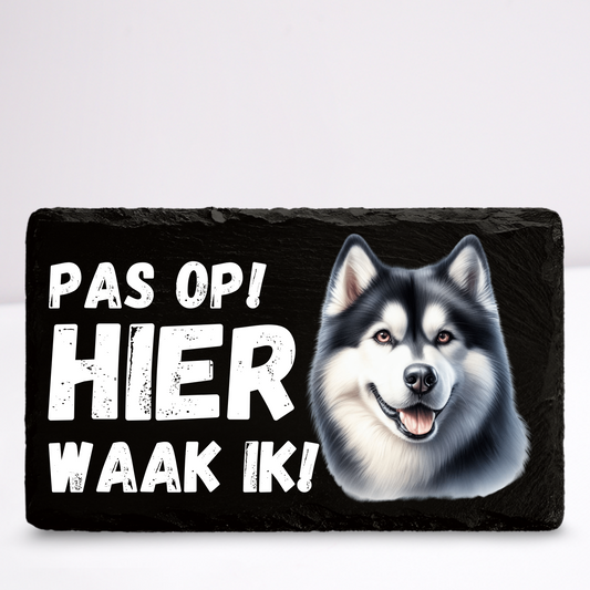 Pas op hier waak ik! Huskey | Leistenen wandbordje