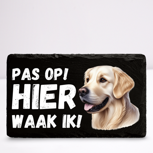 Pas op hier waak ik! Labrador retriever | Leistenen wandbordje