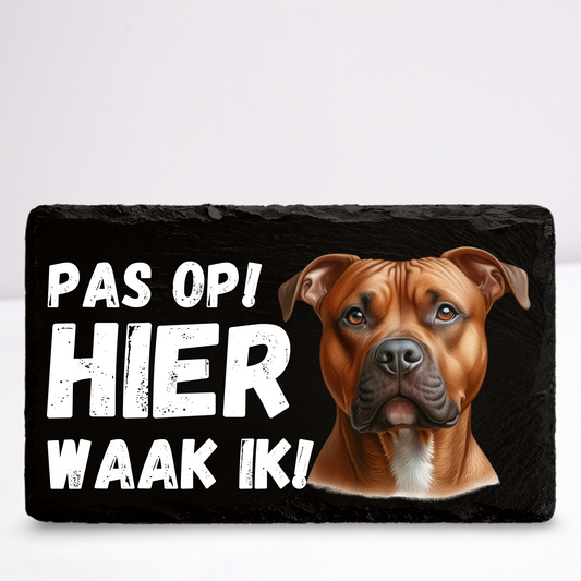 Pas op hier waak ik! Pitbull (Bruin) | Leistenen wandbordje