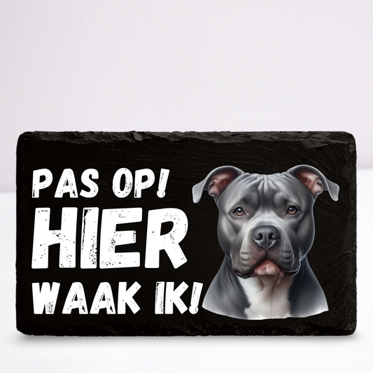 Pas op hier waak ik! Pitbull (Grijs) | Leistenen wandbordje