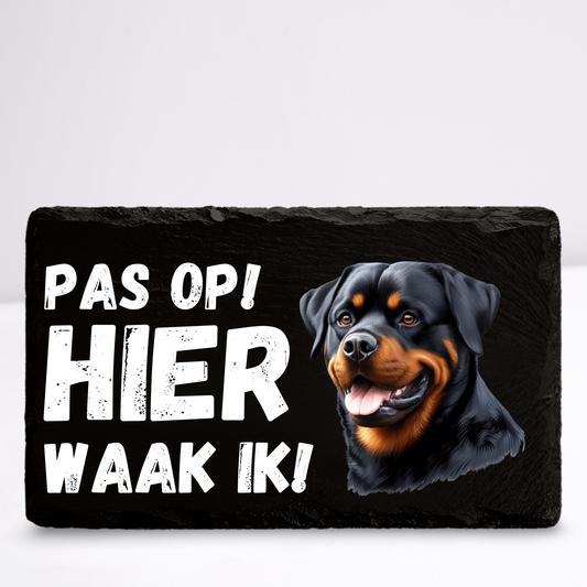 Pas op hier waak ik! Rottweiler | Leistenen wandbordje