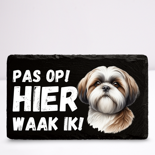 Pas op hier waak ik! Shih Tzu | Leistenen wandbordje