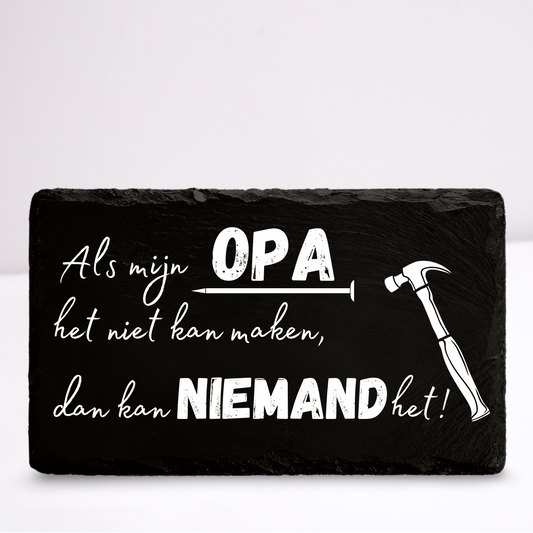 Als opa het niet kan dan kan niemand het! | Leistenen wandbordje