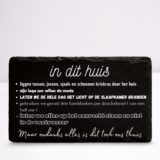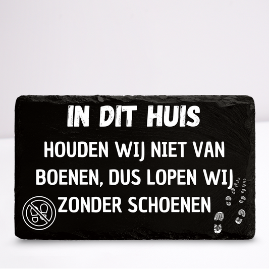 In dit huis (geen schoenen) | Leistenen wandbordje