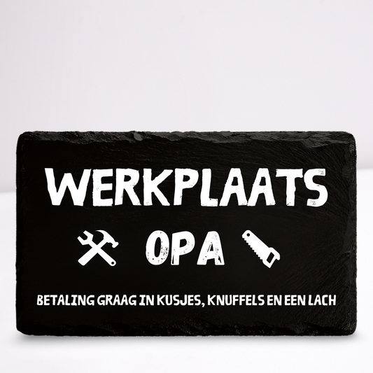 Werkplaats opa | Leistenen wandbordje