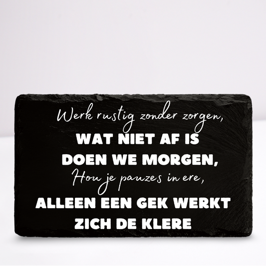 Werk rustig zonder zorgen | Leistenen wandbordje