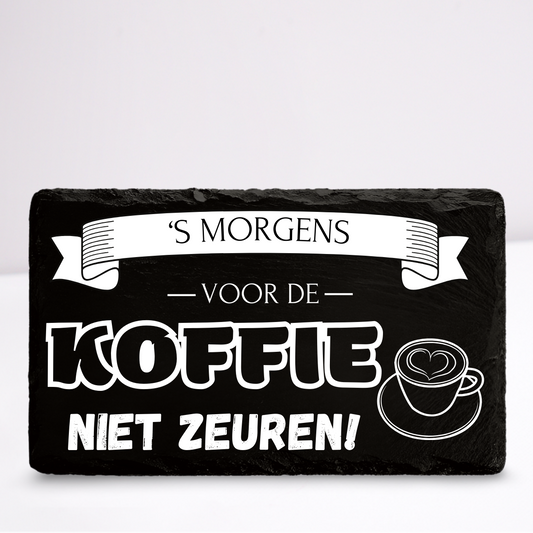 'S morgens voor de koffie niet zeuren | Leistenen wandbordje