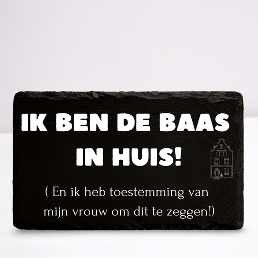Ik ben de baas in huis! | Leistenen wandbordje