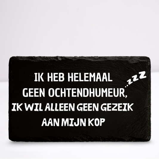 Ik heb geen ochtendhumeur | Leistenen wandbordje