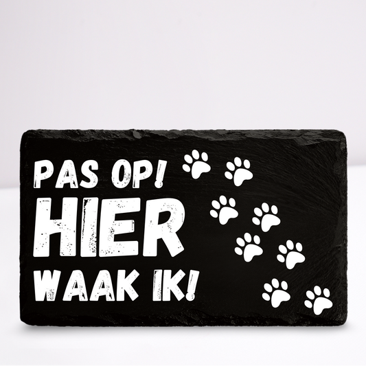 Pas op hier waak ik! Pootjes | Leistenen wandbordje