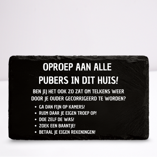 Oproep aan alle pubers | Leistenen wandbordje