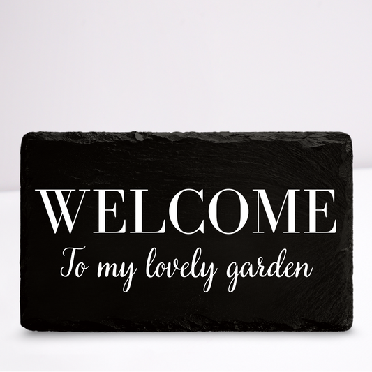 Welcome to my lovely garden | Leistenen wandbordje