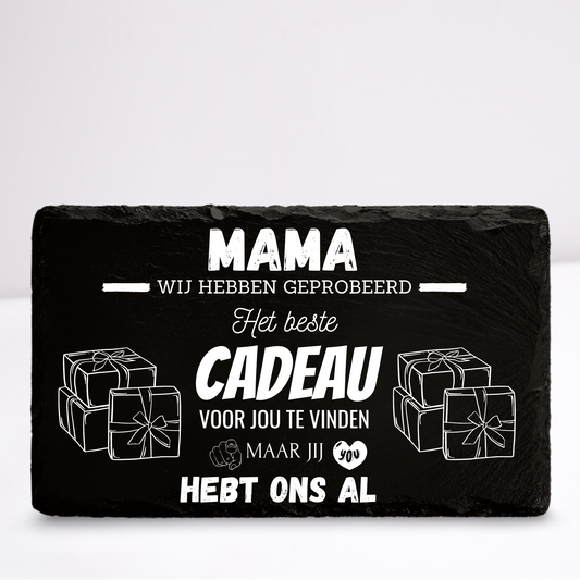 Mama we hebben geprobeerd het beste cadeau voor jou te vinden | Leistenen wandbordje