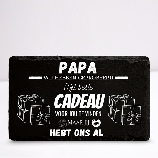 Papa we hebben geprobeerd het beste cadeau voor jou te vinden | Leistenen wandbordje