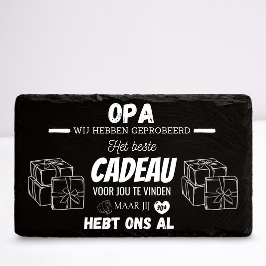 Opa we hebben geprobeerd het beste cadeau voor jou te vinden | Leistenen wandbordje