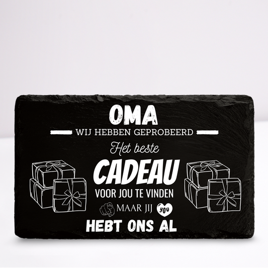 Oma we hebben geprobeerd het beste cadeau voor jou te vinden | Leistenen wandbordje