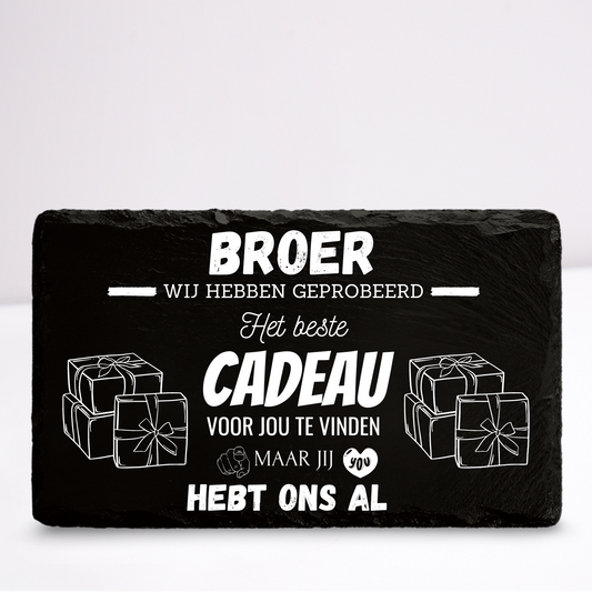 Broer we hebben geprobeerd het beste cadeau voor jou te vinden | Leistenen wandbordje