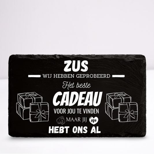 Zus we hebben geprobeerd het beste cadeau voor jou te vinden | Leistenen wandbordje