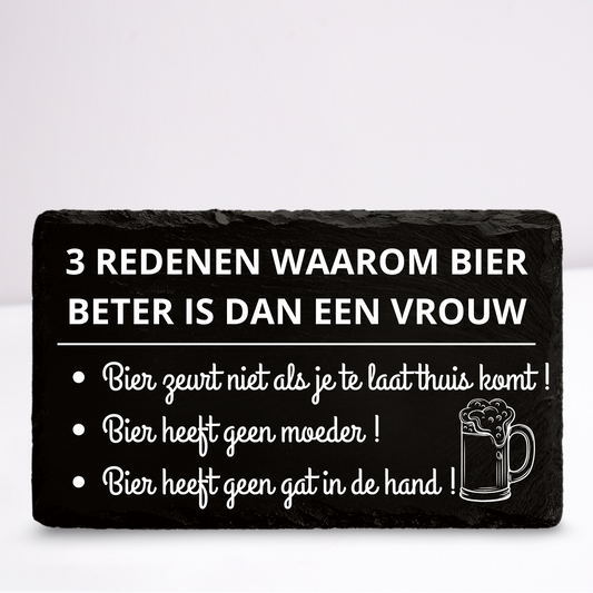 3 Redenen waarom bier beter is dan een vrouw | Leistenen wandbordje